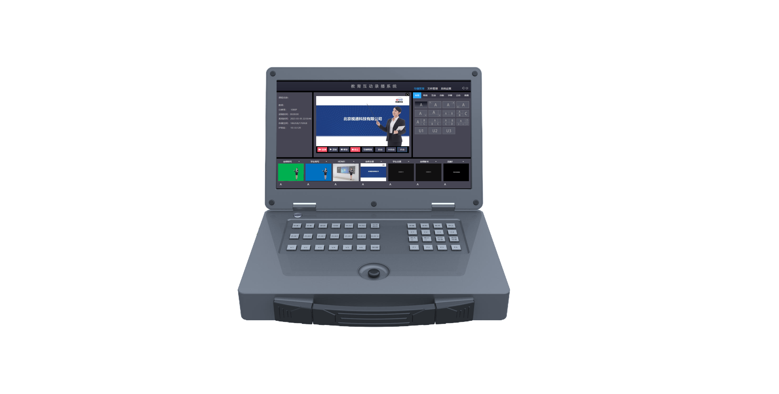 视通科技高清智能教育录播系统是集图像分析技术、流媒体传输技术、声音降噪技术,视频防抖技术、视频编码技术于一体的先进录播系统,在一台录制主机上实现了自动跟踪、智能导播、课堂直播、课程录制等功能,完整地记录教师在授课中的活动,记录整个课堂的教学过程,实现教师授课、PPT课件、师生互动等多路音视频信号的自动跟踪、切换、录制和直播功能,并最终将这些声音和画面形成具有再利用价值的音视频文件,以供广大师生及教研管理者课后点播观研、网上共享或上交相关组织完成重要使命。