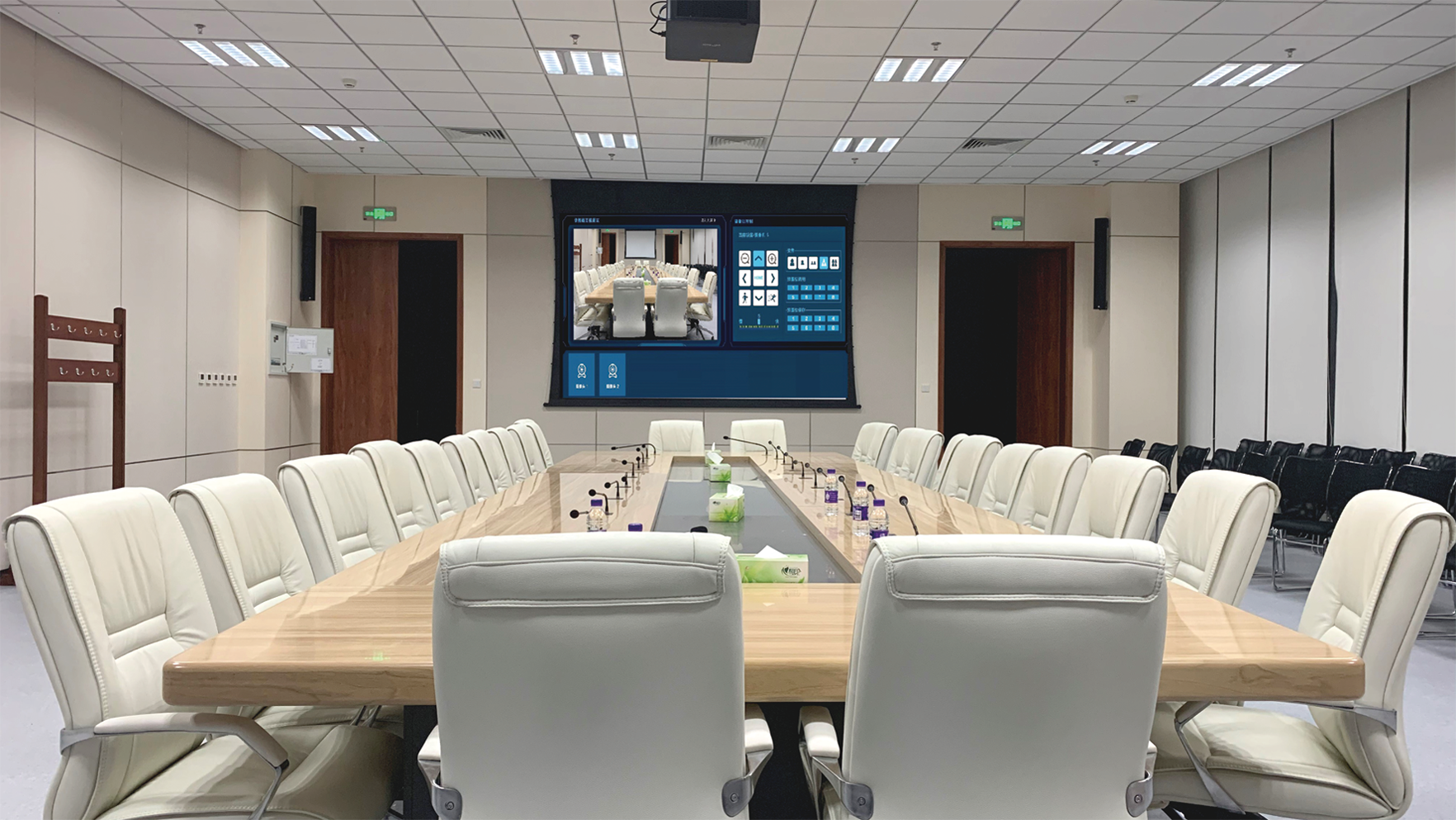 可以通过右侧菜单列表(正常为隐藏状态,可通过单击中间箭头调用)获取对应的信号源画面。此外,当现场拼接屏以单个模块显示时,可以通过直接点击模块的方式获取该大屏上的画面。