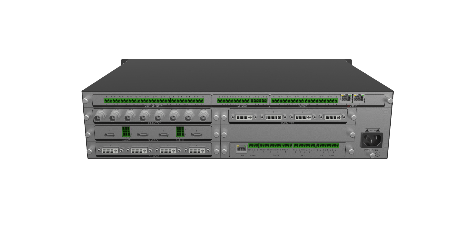 提供hdmi/dvi/sdi/hdbaset/vga/光纤多种板卡选配,具有字幕/edid/hdcp/单图层拼接/多画面合成等功能